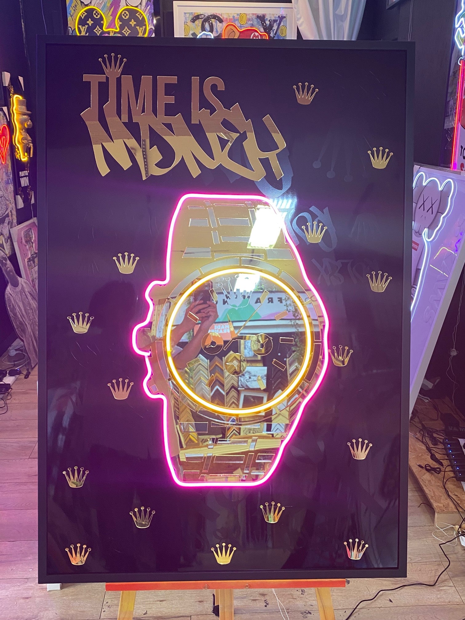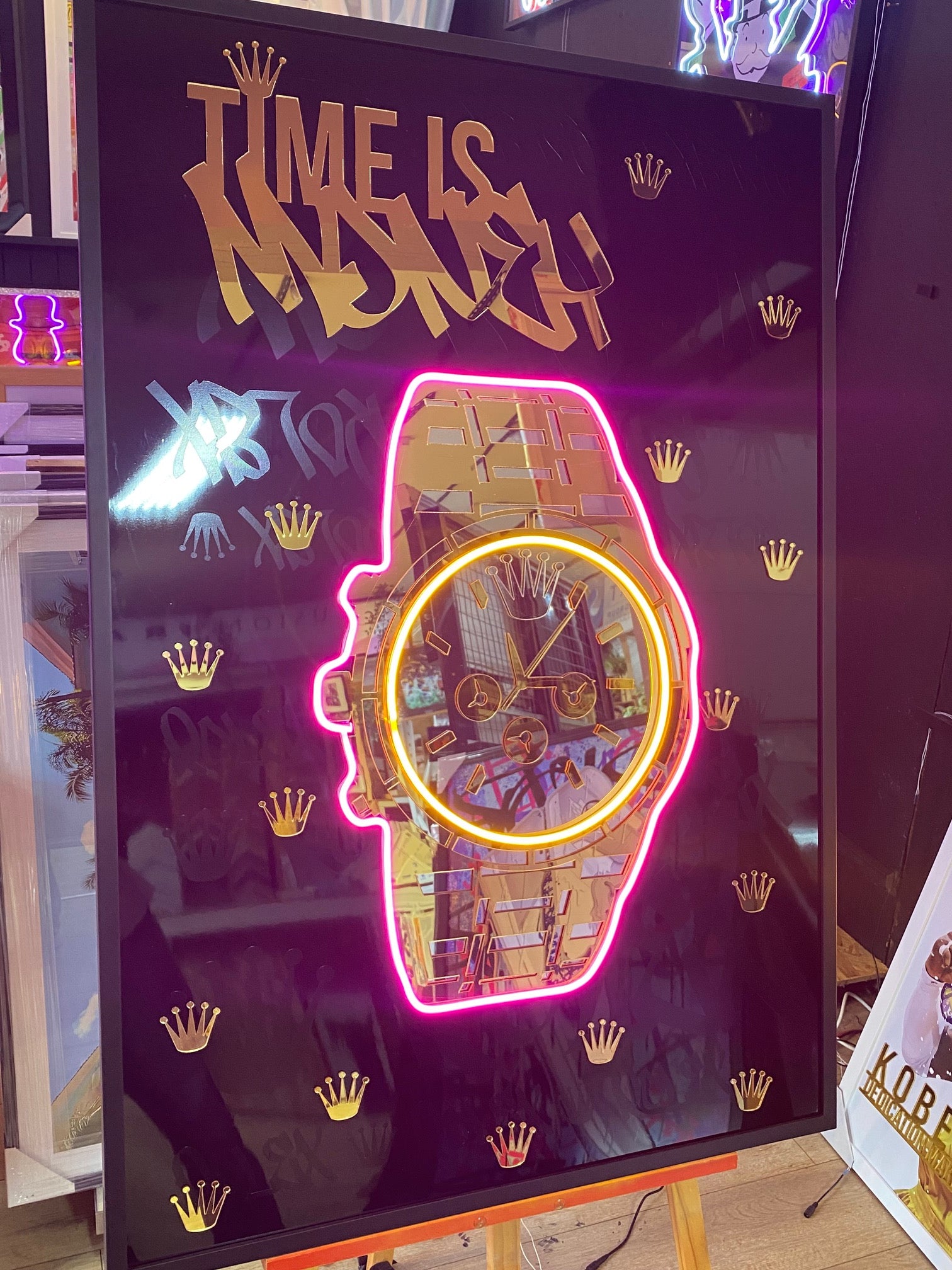 Watch "Time is Money" LED | 860x1250mm | On Black Metallic Surface
